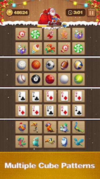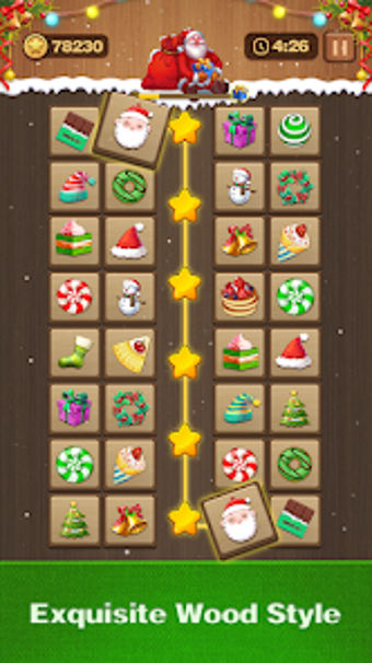 Wonder Connect - Jingle Bells는 일반적인 매치 3 퍼즐 게임과는 다릅니다. 여기서는 비슷한 아이콘 쌍을 매치합니다. 나무 블록의 쌍을 지우면 공간이 생겨 더 많은 블록을 연결할 수 있습니다. 중간에 다른 항목으로 분리된 블록은 연결할 수 없습니다. 재미있는 점은 다양한 디자인과 패턴: 스포츠, 플레잉 카드, 동물 및 휴일 아이콘 등이 있습니다.